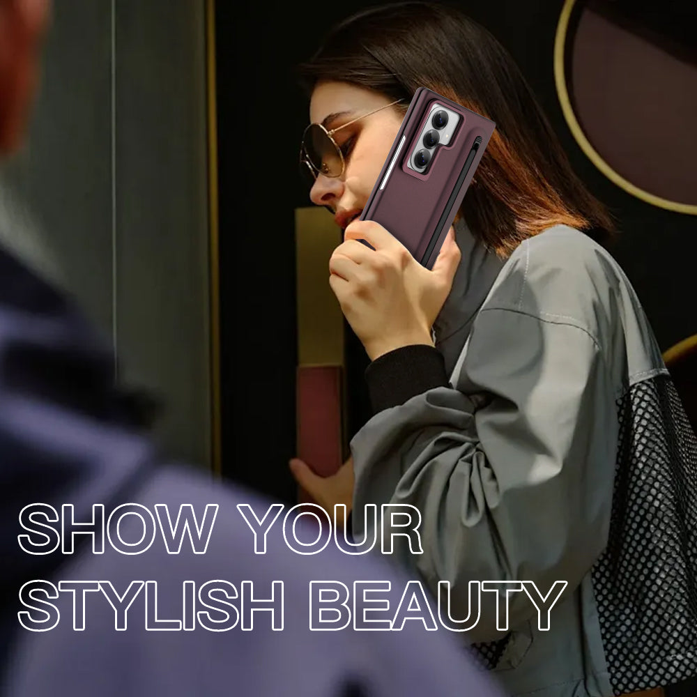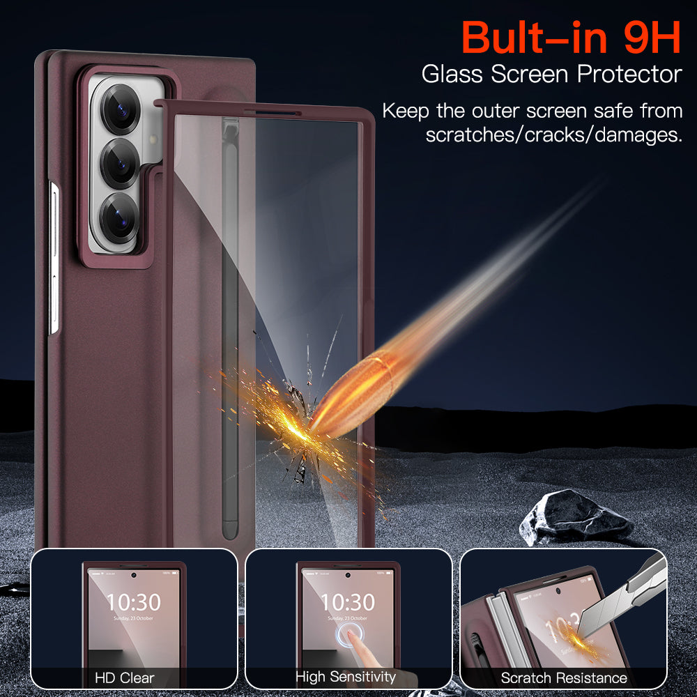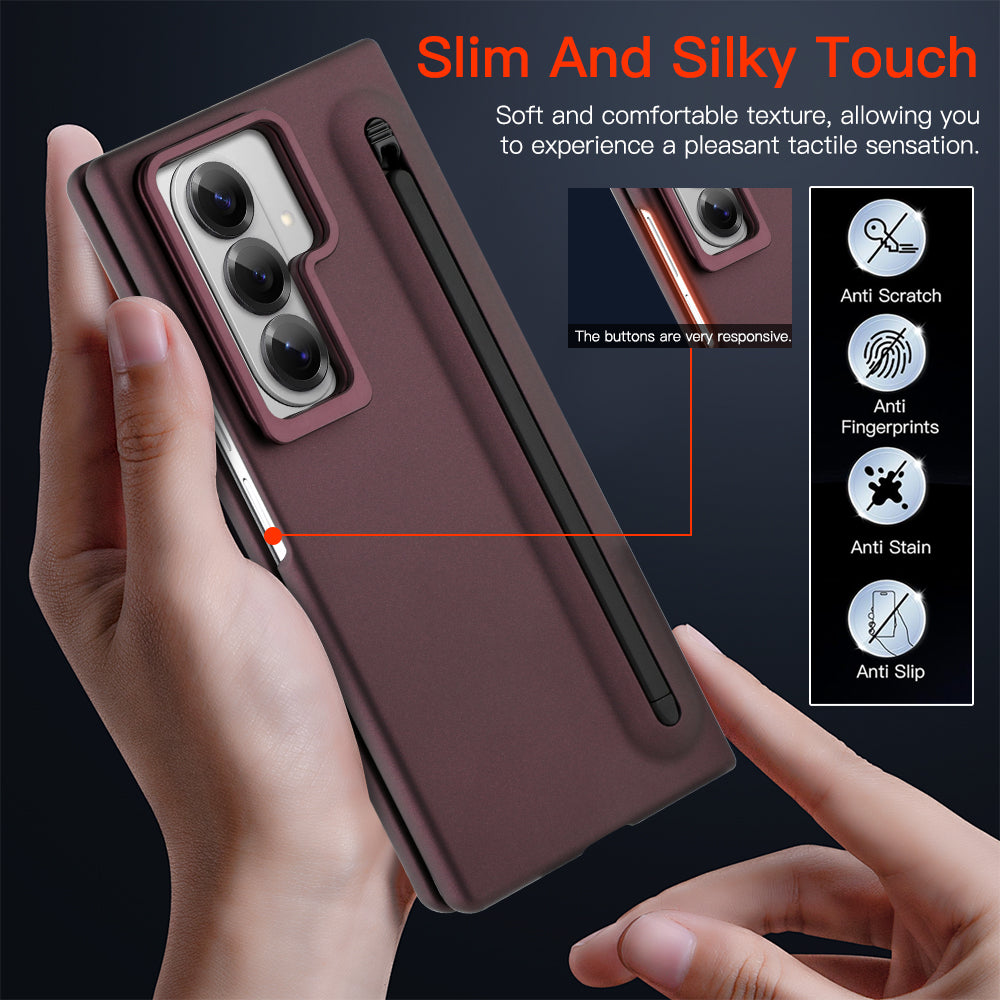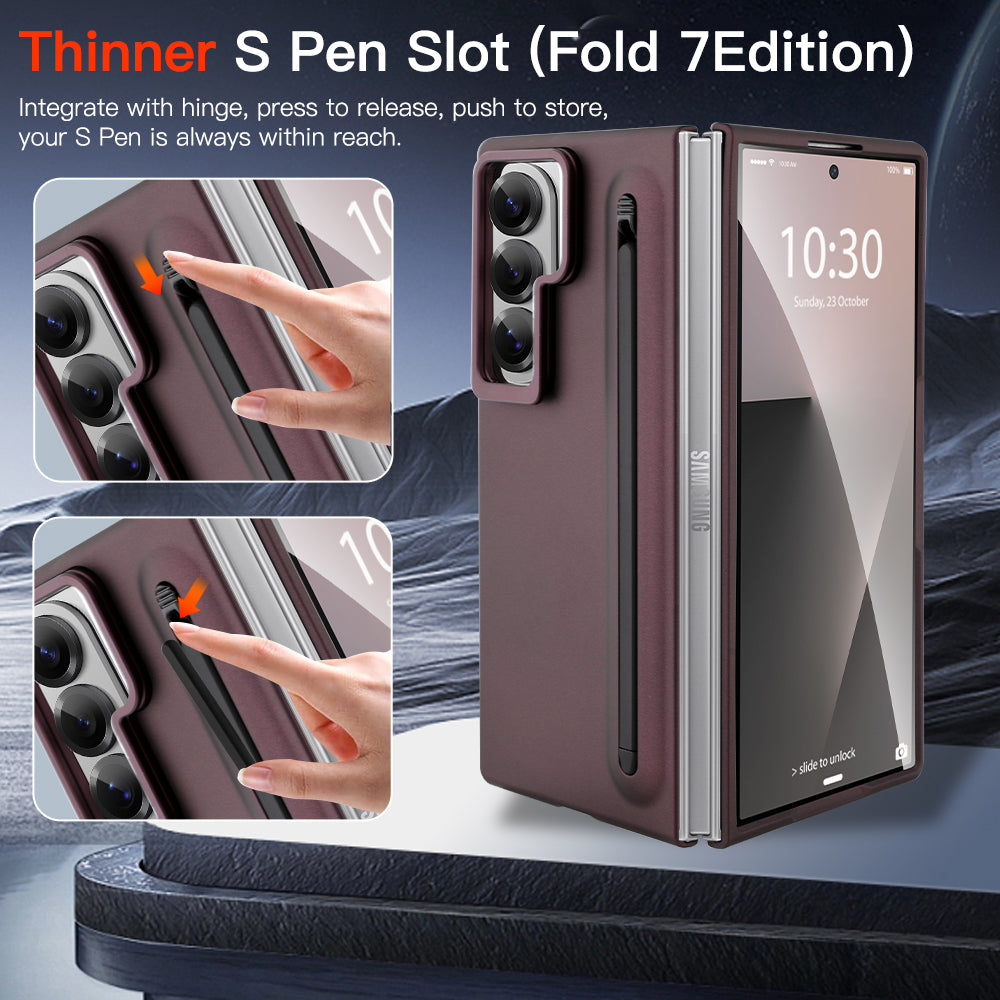 SOKAD - 全城熱賣 - 適用於三星 Galaxy Z Fold7 手機殼 自帶手寫筆,鋼化膜和支架 酒紅色