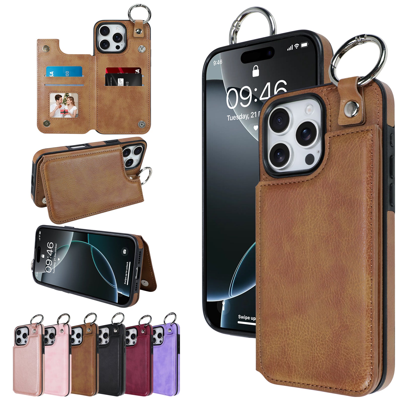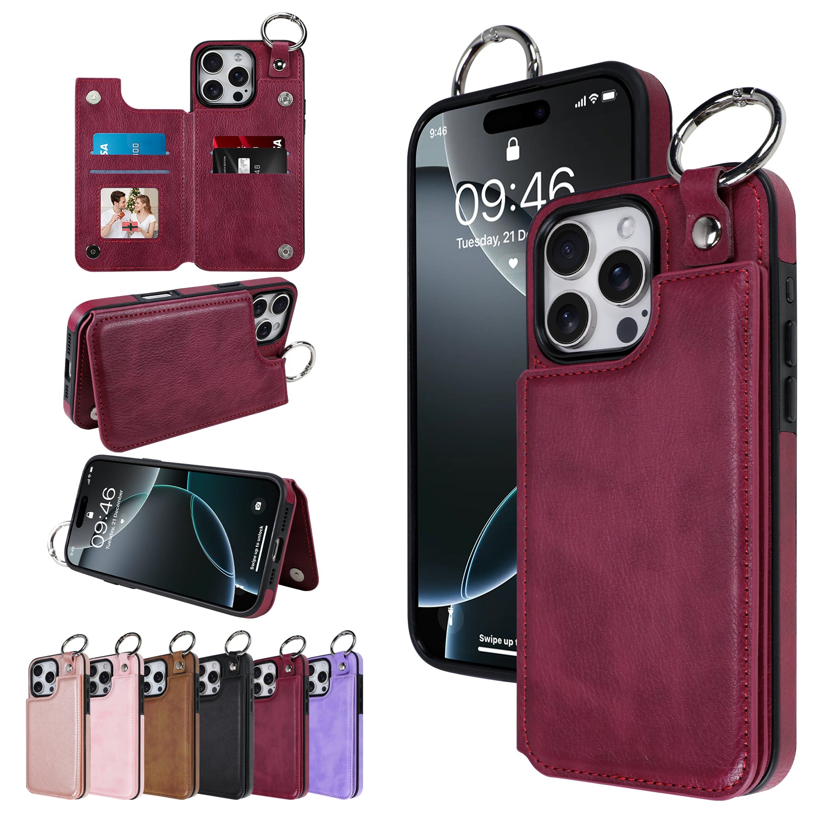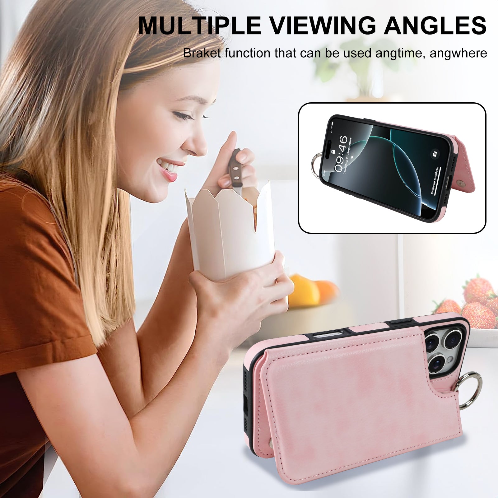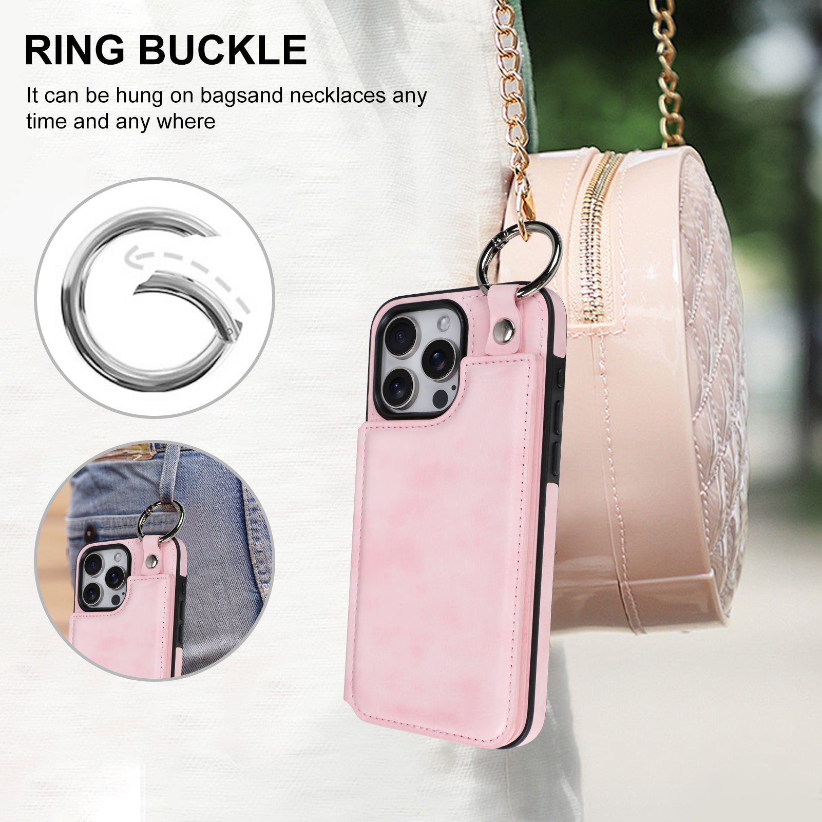 SOKAD - SOKAD - 全城熱賣 - 適用於iPhone 16 Pro Max 錢包手機殼 PU皮革插卡支架保護套 粉色