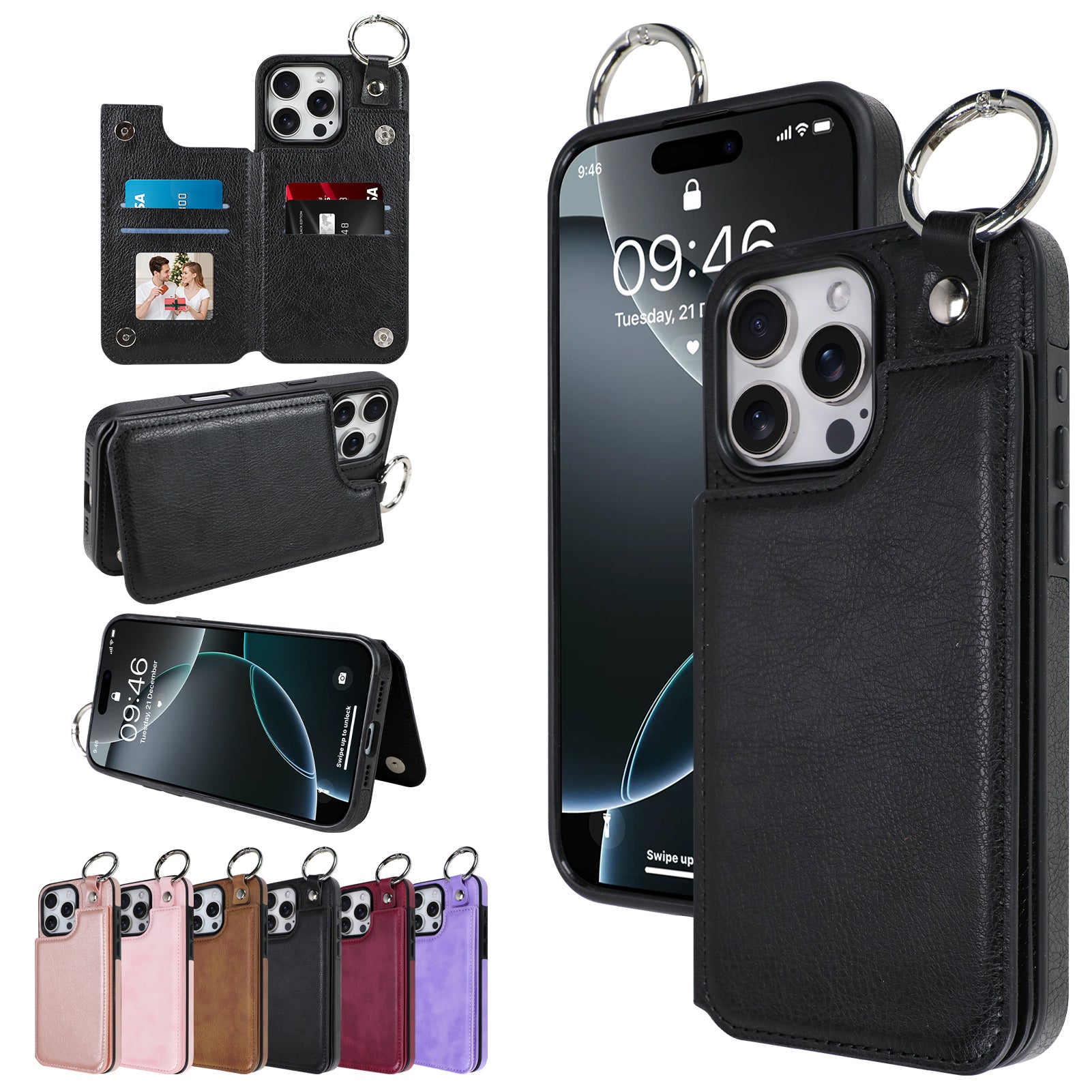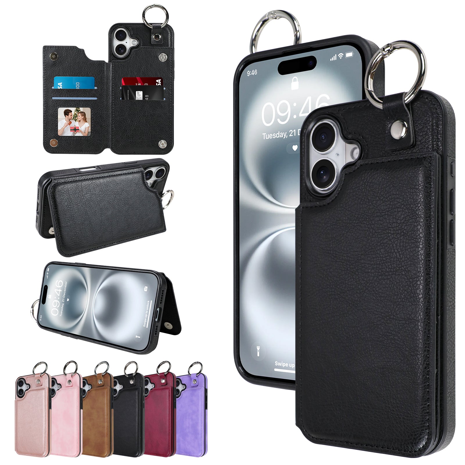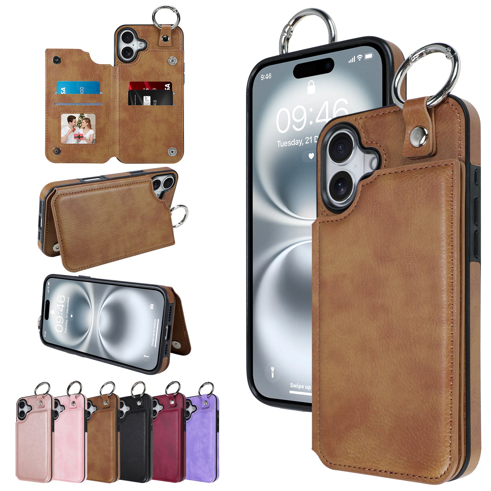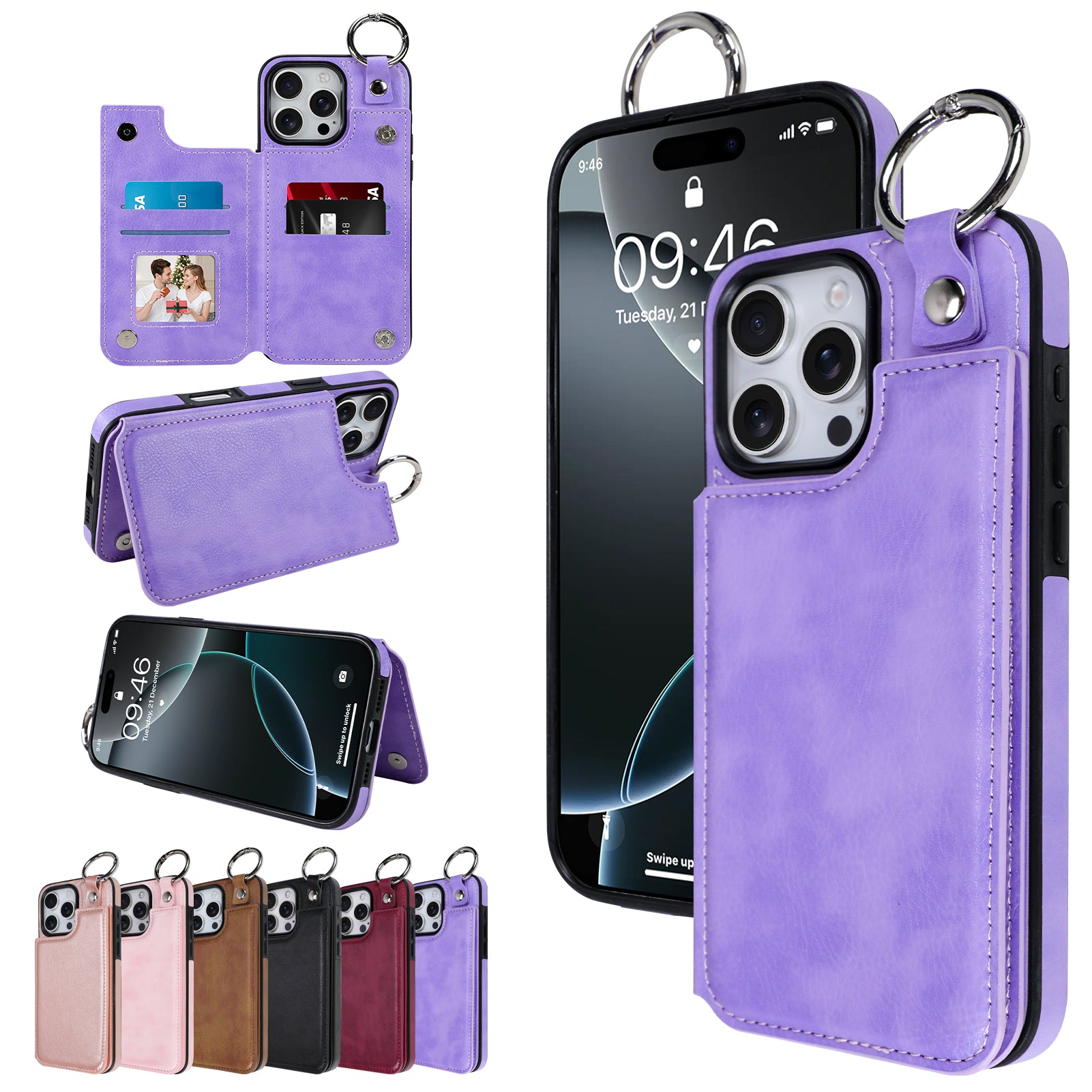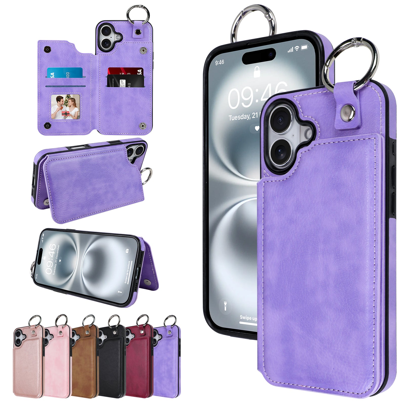SOKAD - SOKAD - 全城熱賣 - 適用於iPhone 16 Pro Max 錢包手機殼 PU皮革插卡支架保護套 粉色